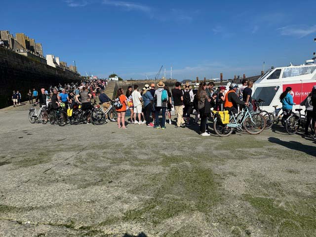 Photos prise le 9 mai un peu avant 18h au départ de St-Malo pour revenir à Dinard: Combien de personnes, dont des cyclistes encore en attente après le départ du bateau?