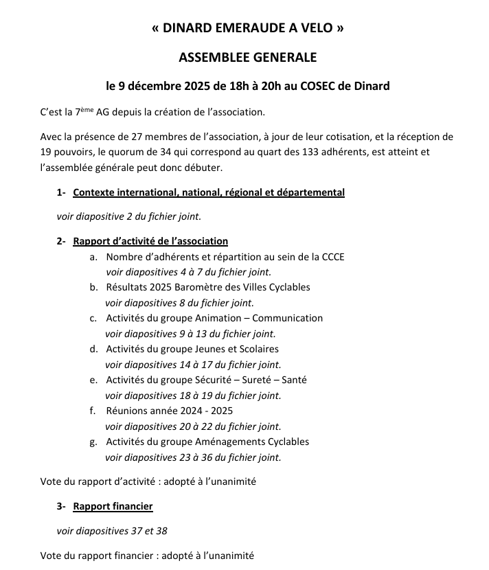 Documents ? Compte Rendu AG h Documentation Flyer "Cyclistes Brillez! Note de position de la FUB Statuts de l'association Règlement Intérieur